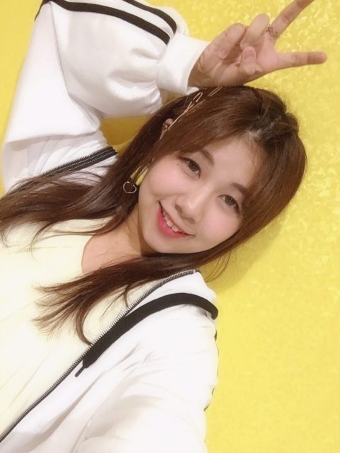 黄色い壁紙見つけてすぐに自撮り(*Ü*)